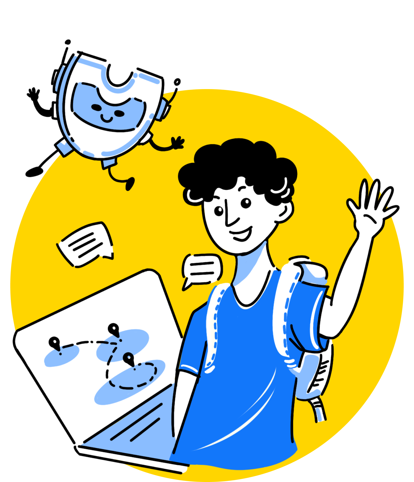 The image of an AI robot based on the letter U of the brand, wearing a customer service headset, represents UniOriente's use of AI to help students plan their study abroad applications, rounded shape lines make it feel friendly and close to people.
