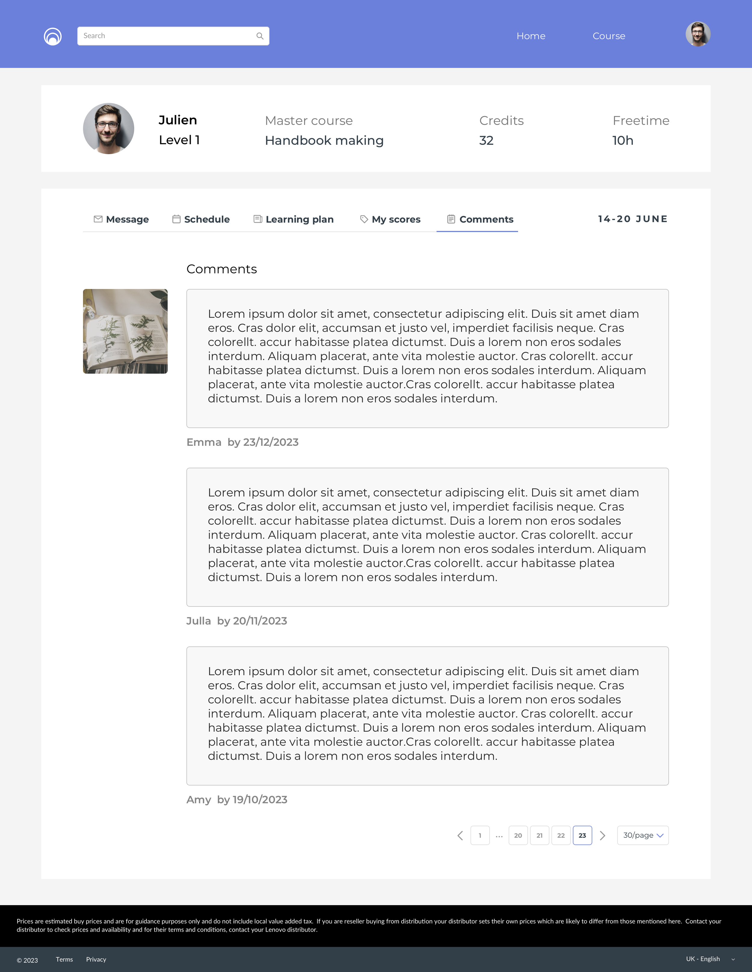 This page show specific lesson, the three tab show course introduction, course schedule and course criteria system.
