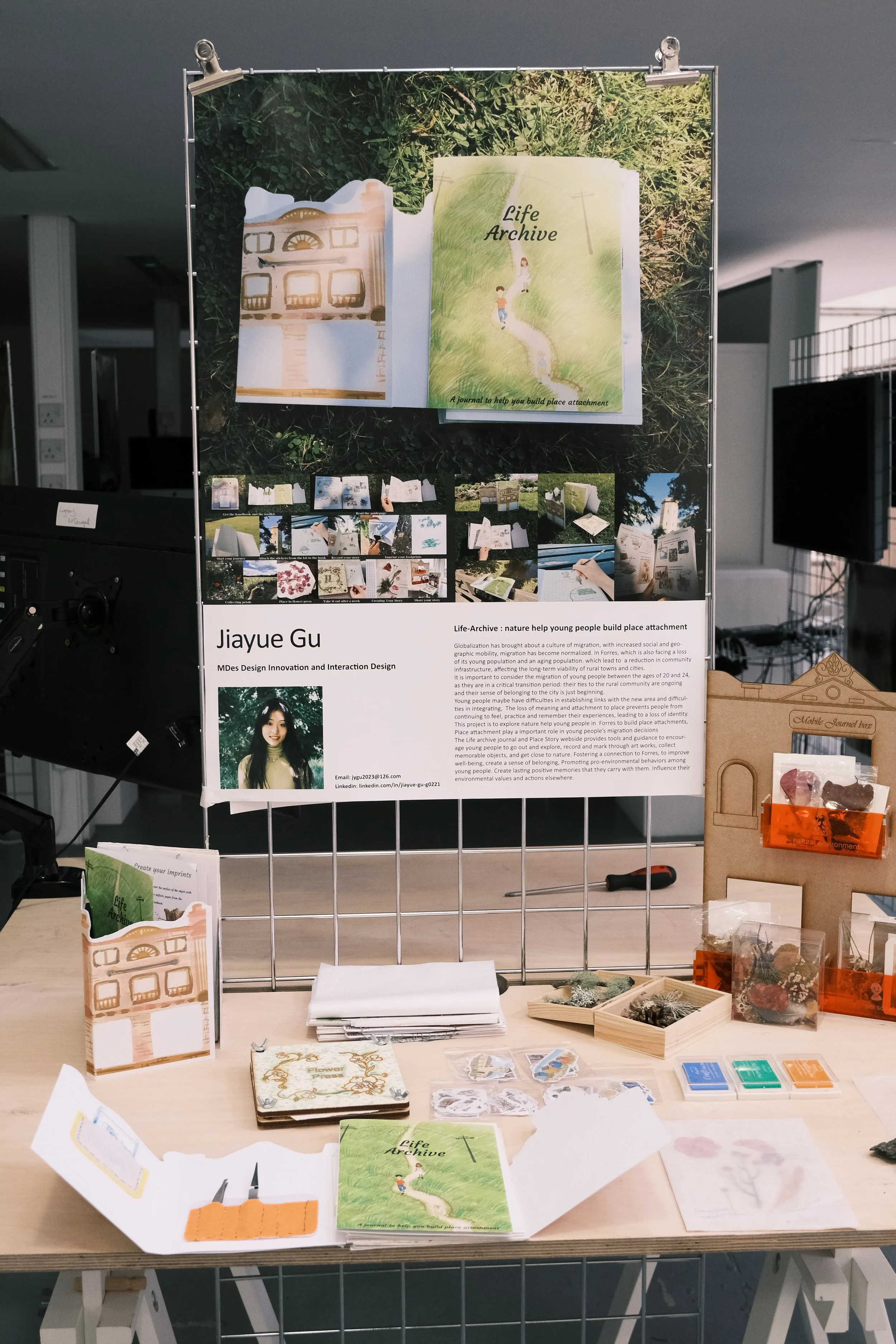 In this stage I researched existing ways to help people connect with new places and came up with four design directions based on pre-design opportunities and co-design summaries, and after evaluating them I chose two of them, prototyped and user-tested, and iterated on different types of materials